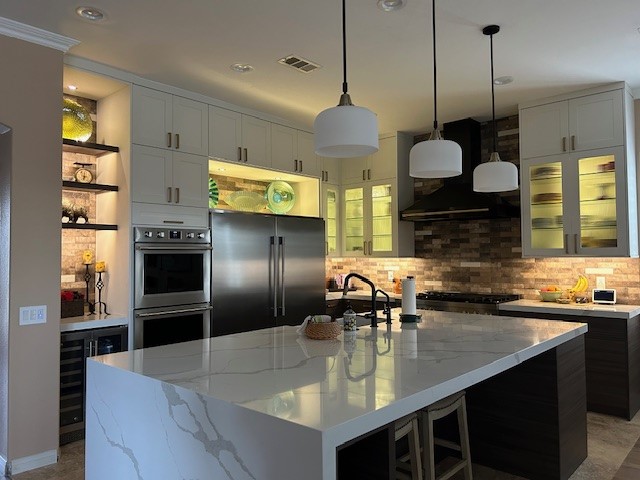 We also offer custom backsplashes tailored to match your style and enhance your kitchen’s aesthetic.